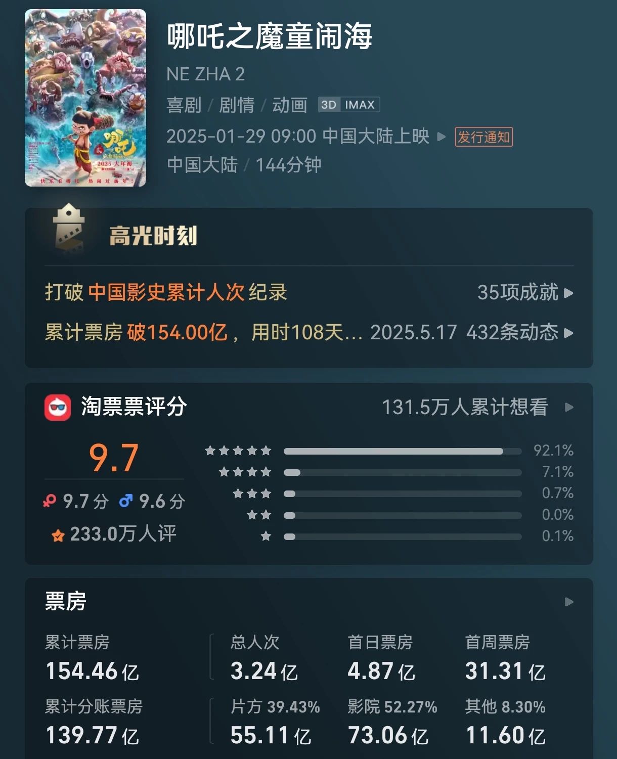 問題或許並不在於“有沒有5億+”,而在於“有沒有一部值得5億+的作品”,特別是對於本身應該追求高娛樂性和極致視聽的暑期檔大片來説,國產電影當下還能不能給出更新也更真的創作。