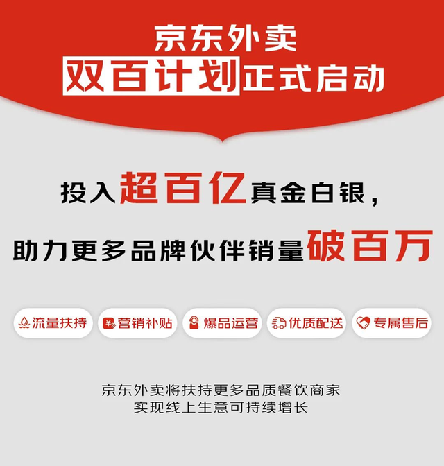 身為傳統電商巨頭,阿里和京東手握雄厚資金,在以外賣為主的即時零售市場頻頻佈局,前者宣佈500億補貼,後者也於近日宣佈了一項投入超百億的、扶持商户的“雙百計劃”。可以看到,儘管在外賣單量上遠遜於美團,但兩大巨頭都不打算退出競爭。