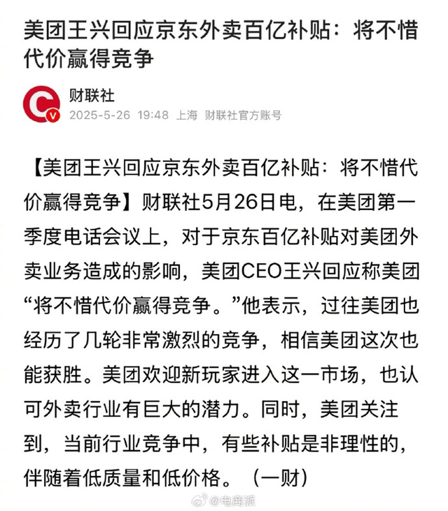 前段時間,在一次財報電話會上,美團創始人王興對京東外賣做出回應:“美團將採取一切必要措施來贏得這場競爭。”