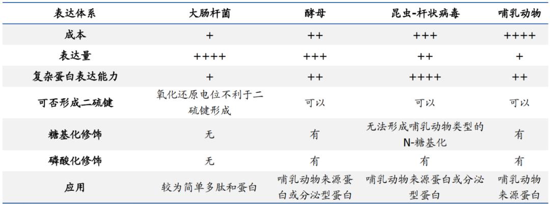 圖:不同蛋白表達系統比較,來源:國盛證券