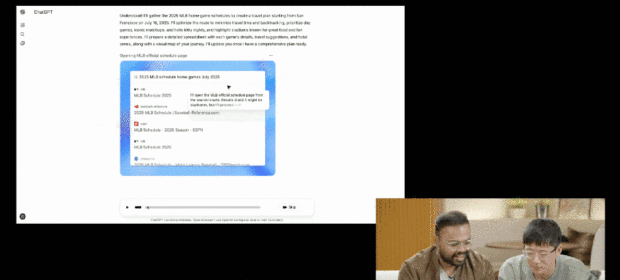 在 ChatGPT Agent 執行完任務之後,用户還可以通過視頻的方式回顧它的執行過程。