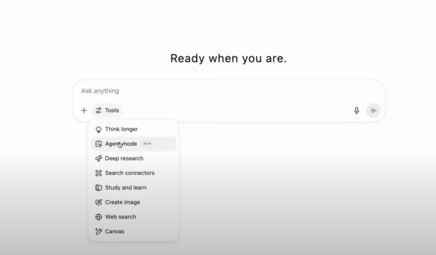 使用該 Agent 的模式很簡單,只需在 ChatGPT 用户端點擊工具菜單並選擇 “ Agent ” 就可以。
