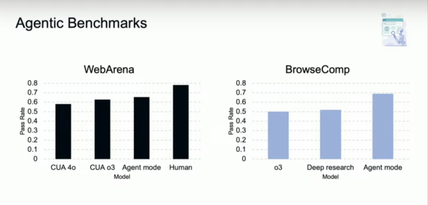 在 WebArena 基準測試中,ChatGPT Agent 的表現已經很接近人類,並高於 o3 和 4o 。