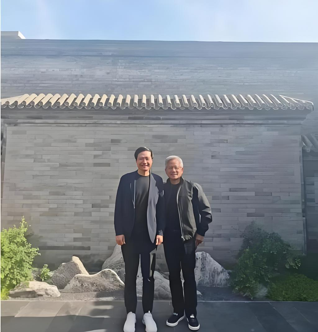 剛創造了這一紀錄的黃仁勳在7月12-13日(週末)來到了北京,並跟小米集團創始人雷軍合影,給小米YU7站台。