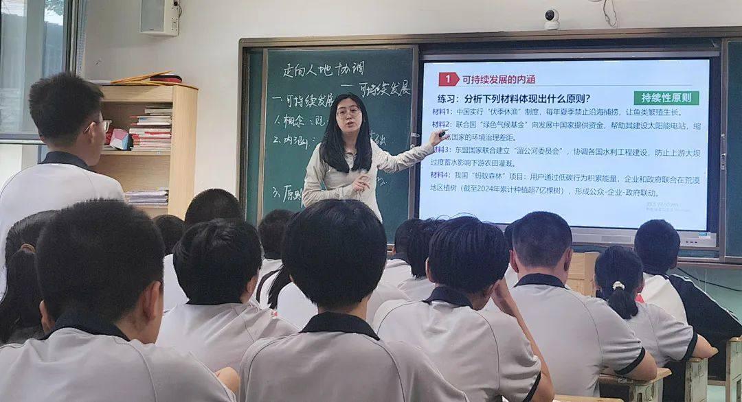 在知識深度融合的當下,單一學科的知識已難以獨立支撐學生的深度學習,需通過跨學科整合構建結構化認知網絡:本次大賽中,多節課嘗試打破學科邊界,探索跨學科主題學習。例如,陳玥老師的“可持續發展”一課,以“垃圾分類”為項目,融合地理(垃圾處理與環境承載力)、化學(垃圾降解的化學反應)、生物(廚餘堆肥的微生物作用)、政治(環保政策的制定與實施)等多學科知識,引導學生從“政策分析—技術可行性—社會接受度”等多維度提出解決方案。這種“問題導向的跨學科教學”,不僅培養了學生的綜合思維,更呼應了新高考“一核四層四翼”的命題導向——高考越來越注重考查學生運用多學科知識解決實際問題的能力。