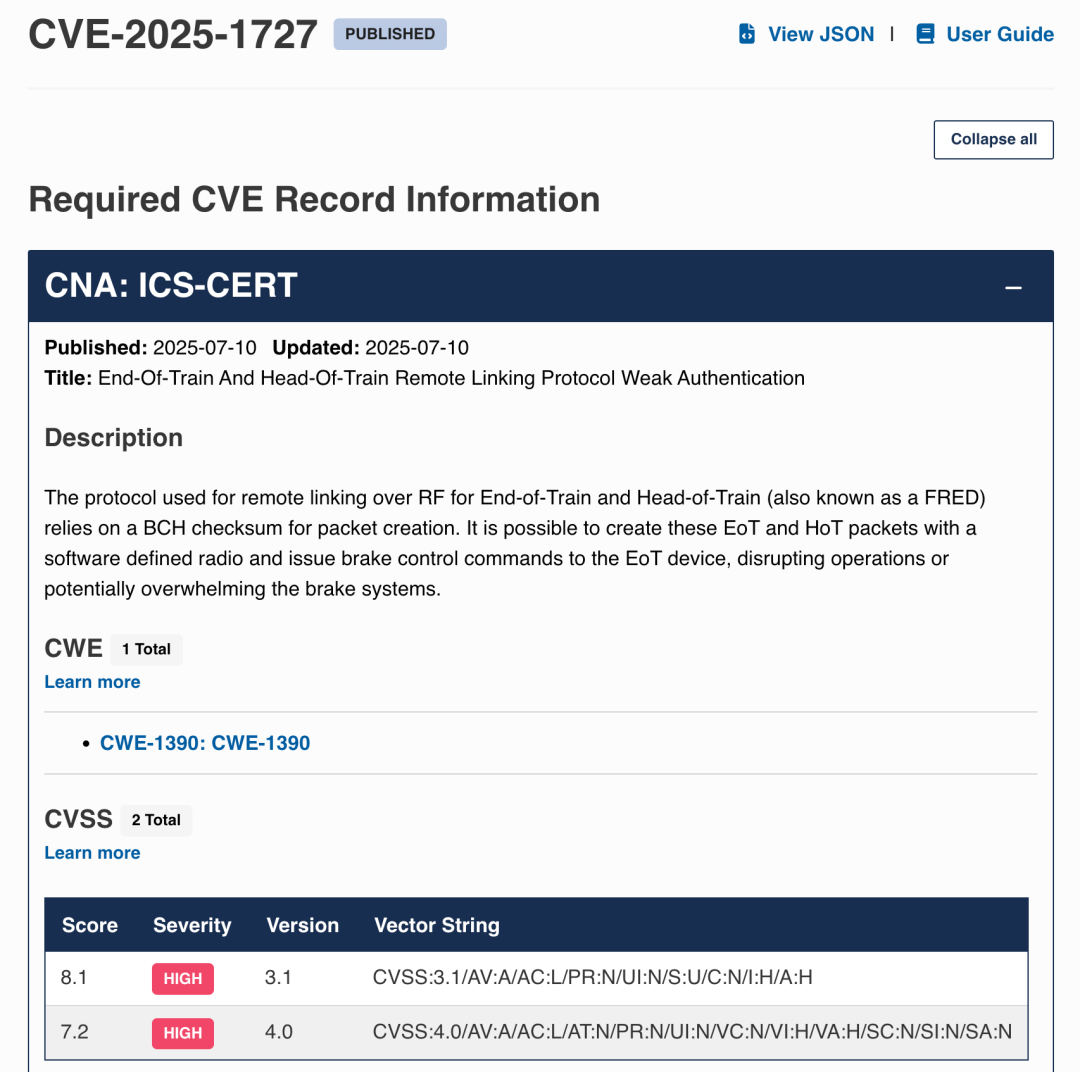 ICS-CERT 當時很重視,聯繫了美國鐵路協會 AAR。