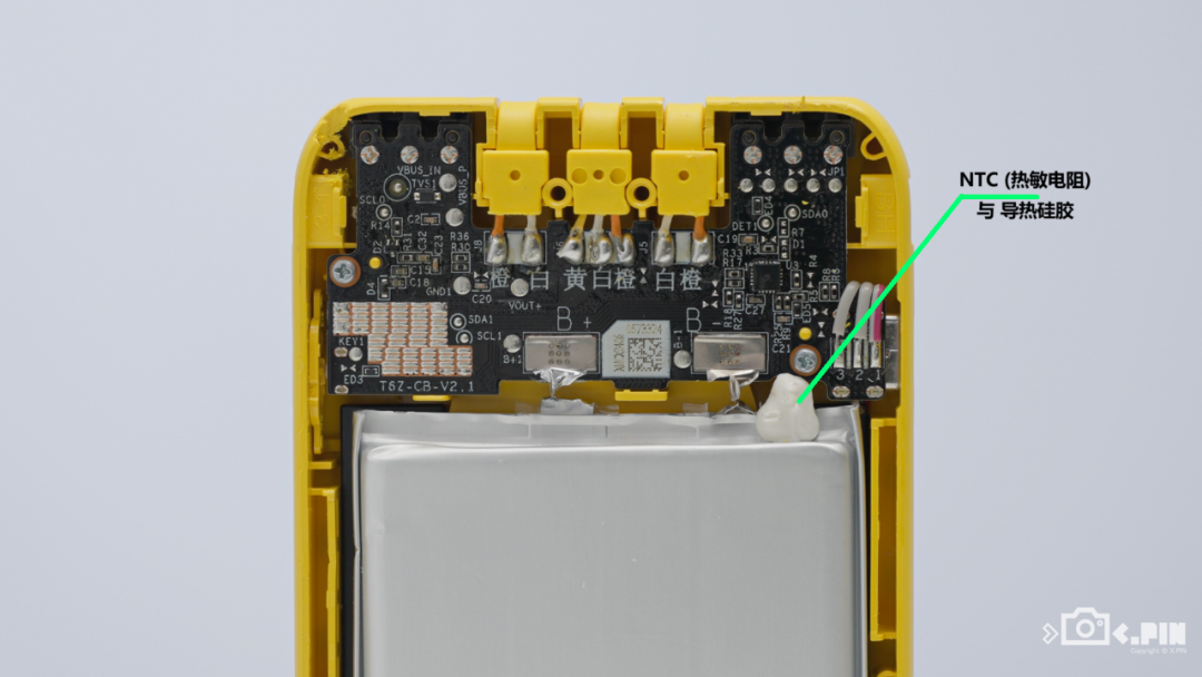 而另外幾個品牌是將 NTC 粘在電芯上進行檢測,通過飛線與 PCB 相連。