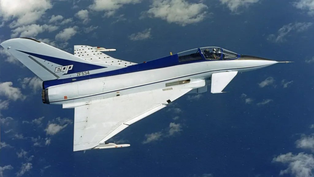 1986年,英國研製了英國宇航公司“實驗性飛機計劃”(EAP)戰鬥機驗證機,以幫助證明後續“颱風”戰鬥機的概念。該驗證機使用的是早期“狂風”戰鬥機的發動機,但其基本構型與“颱風”戰鬥機大致相似。