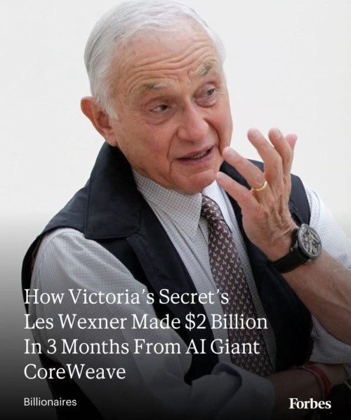 然而,這個熱衷於安裝攝像頭的韋克斯納,愛潑斯坦的金融家,藉着川普政府加密貨幣政策的東風,創造了三個月淨賺了20億美元的“股市神話”。韋克斯納財富增長的最大推動力是他持有加密貨幣AI公司CoreWeave 4% 的股份。