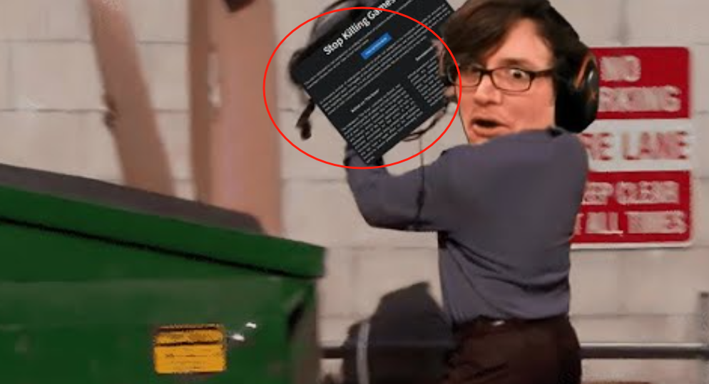 他萬萬沒想到,事情以極其抽象的方式完成了反轉。著名主播兼前暴雪娛樂開發者Thor,從“停止殺死遊戲”運動誕生開始,就一直持批評態度,在視頻中發表長篇大論抨擊這場運動,甚至視頻封面就是他將請願頁面丟進垃圾桶。現在Thor看簽名數沒啥達標希望了,乾脆半場開香檳,得意洋洋地表示,“停止殺死遊戲”就該失敗。