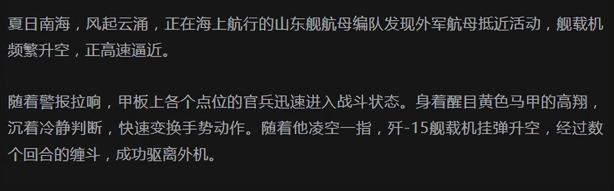 綜合“中國軍號”、“中國軍視網”等權威報道,山東艦在南海區域與外軍航母編隊發生了高強度“對峙”,艦載機部隊更是掛彈緊急升空,與外軍戰機在空中“纏鬥”多個回合,最終成功驅離對手。