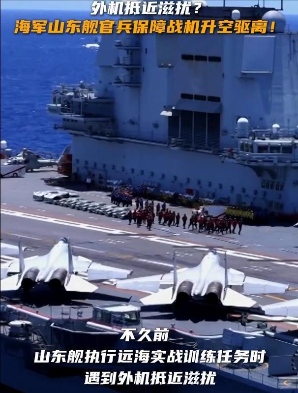 山東艦甲板上,殲-15戰機掛着實彈呼嘯升空,直撲逼近的外軍目標——這充滿火藥味的場景,正通過官方媒體渠道向公眾展現。