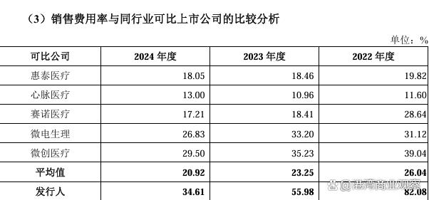 與同一時期同行可比公司銷售費用率均值的26.04%、23.25%和20.92%相比,北芯生命當期的銷售費用投入要高於可比公司均值13個百分點以上。