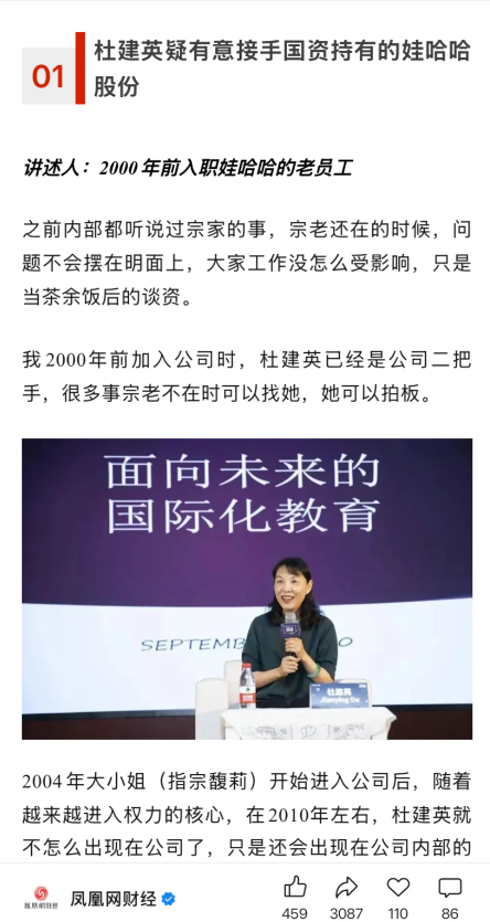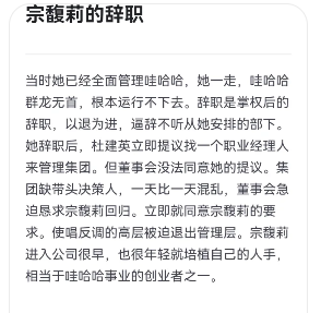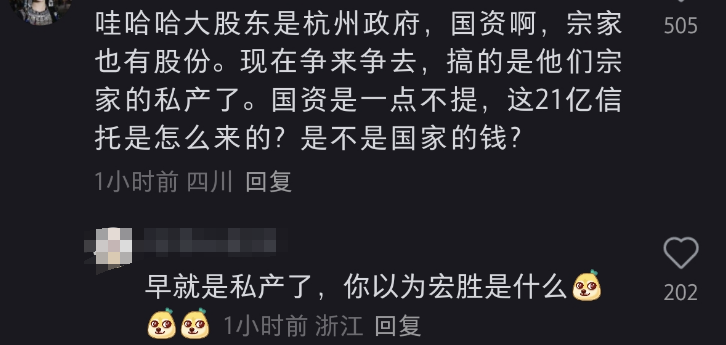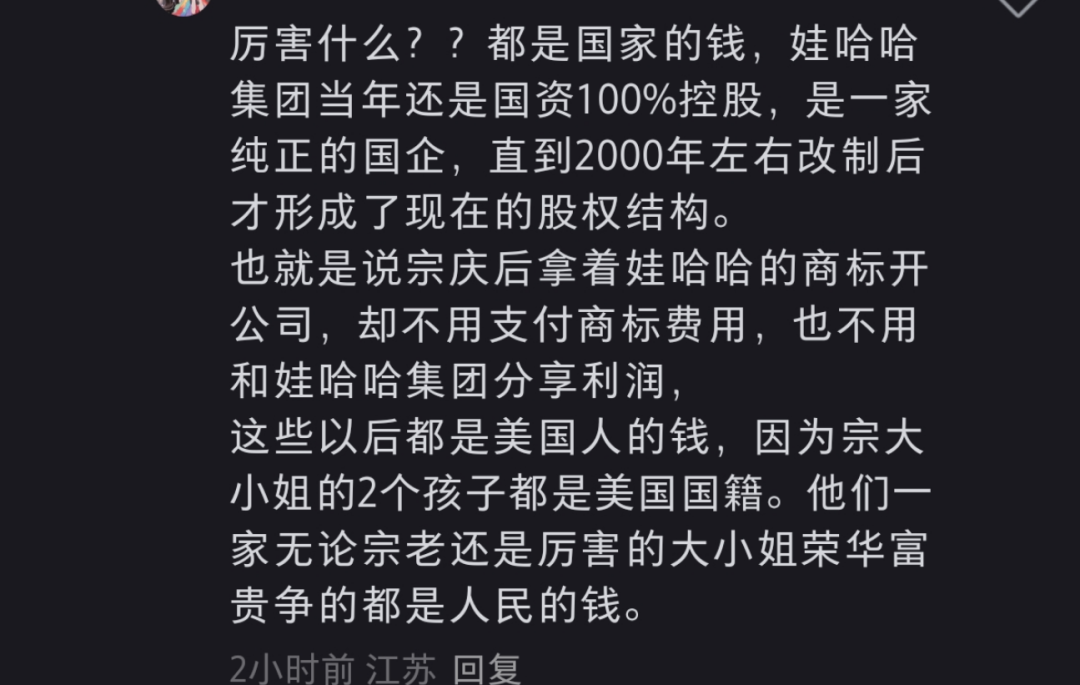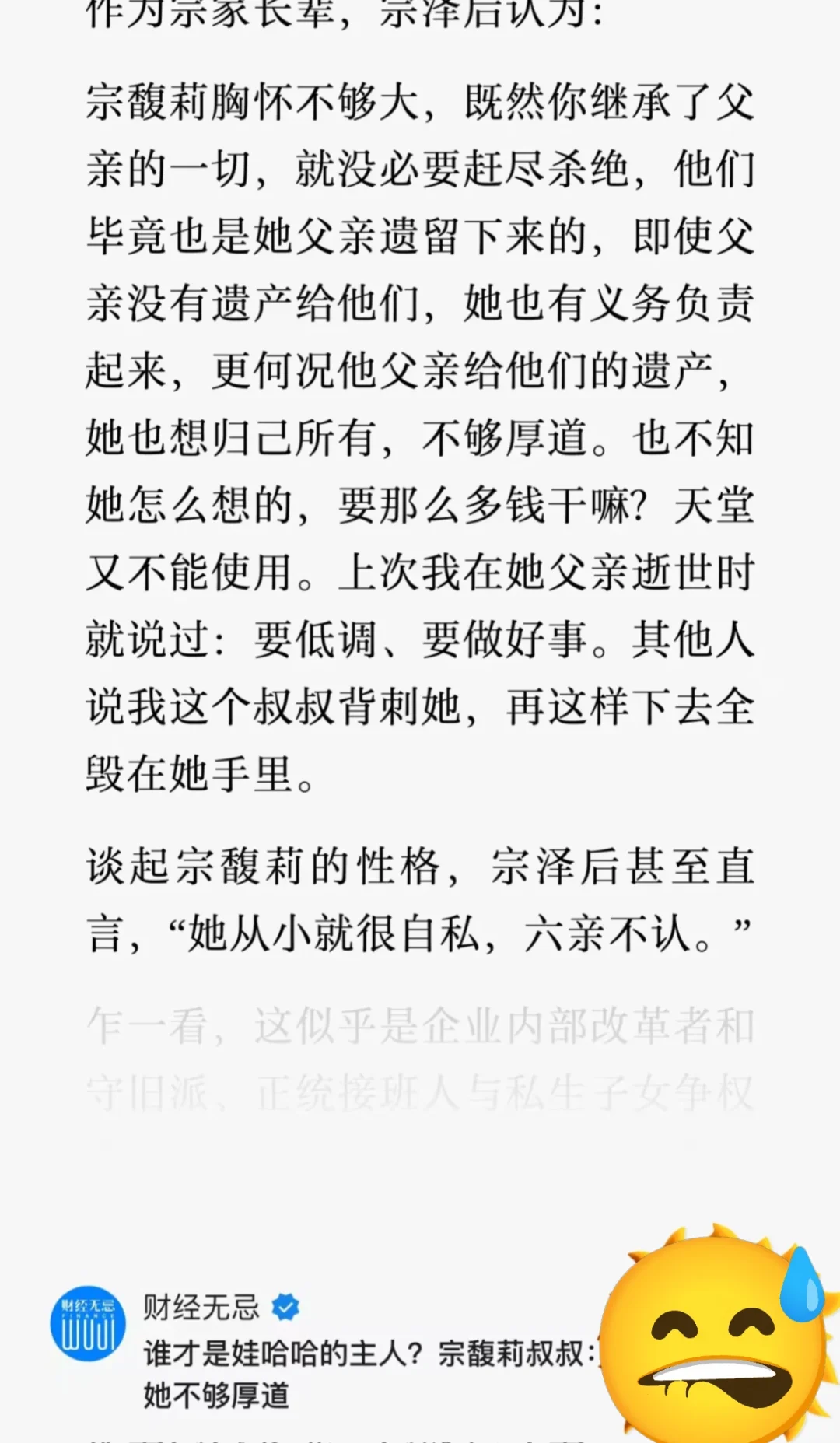 説網友們吵來吵去,都把娃哈哈當他們宗家的了,覺得非要有個姓宗的繼承人不可,但其實忽略了娃哈哈是個國企啊。