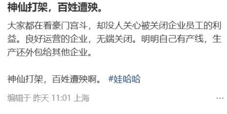 有人想到了無辜的打工人,感慨底層牛馬才是最倒黴的,一覺醒來,公司就被幹沒了。