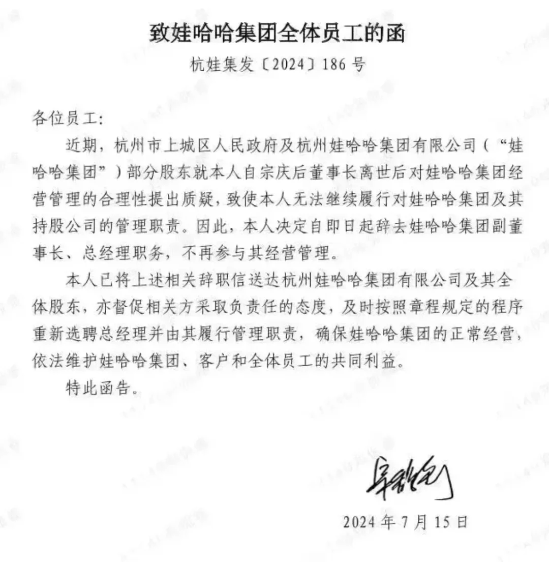 她還説過一番意味深長的話:“在娃哈哈發展的過程中,有的人不畏艱難,勇往直前;而有的人卻慢慢懈怠了,想躺在功勞簿上。”