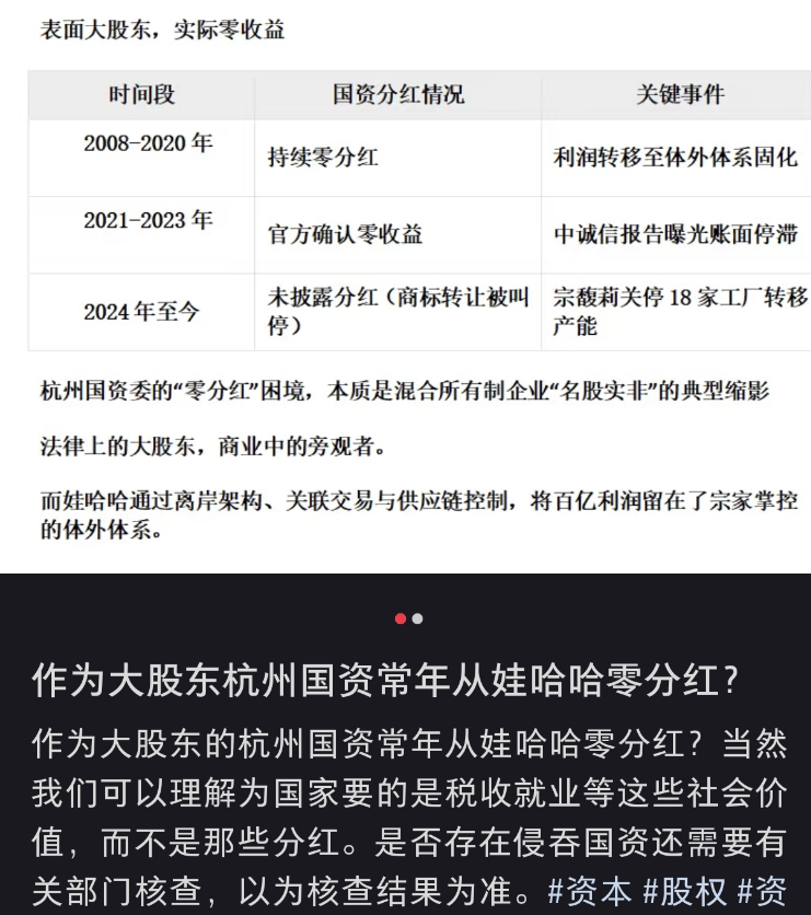 怎麼分紅這麼多,娃哈哈的最大股東杭州國資委卻一分沒賺到呢?
