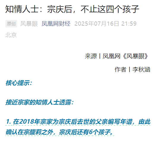 畢竟誰也沒想到營銷了一輩子愛老婆愛女兒的宗慶後,一眨眼就多了三個美國籍私生子,還給人留下了那麼多的海外資產。