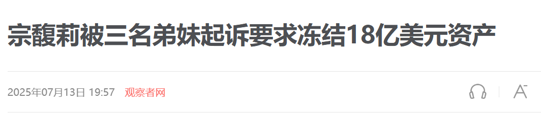 起因其實大家都知道,就是因為宗慶後突然冒出來三個私生子,把宗馥莉給告了。