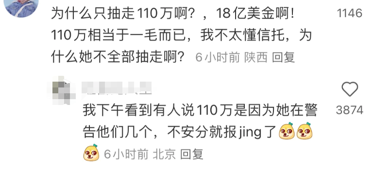 就是在暗示私生子們,這筆錢我能光明正大地動,你們想要就告,就讓你們來扯下宗慶後的遮羞布。網友説,這是赤裸裸的報復。