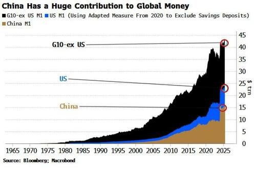 反直覺的是,中國的貨幣是全球流動性的最重要驅動力,M1數值大幅領先美國。牛市是必然的