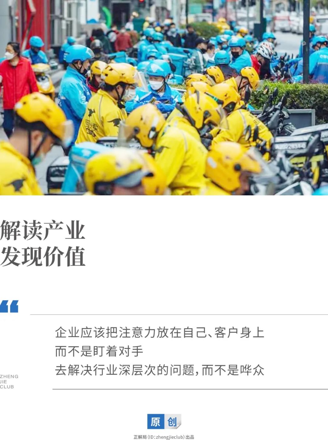 不只是外賣平台,我們所有的企業都該把注意力放在自己、客户身上,而不是盯着對手,去解決行業深層次的問題,而不是譁眾。