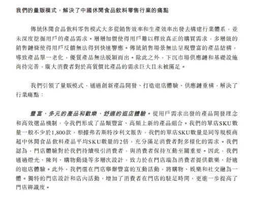 截至2024年12月31日,鳴鳴很忙共佈局了36個倉庫,其門店通常在倉庫的300公里範圍內,一般均可實現24小時內及時向門店配送,其2024年的存貨週轉天數為11.6天,倉庫週轉效率顯著優於行業平均水平;不僅如此,鳴鳴很忙每月還上新數百款產品,實現單店SKU≥1,800款,是同等規模商超中休閒食品飲料產品平均SKU數量的2倍。
