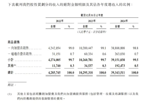 數據顯示,2024年其99.5%收入來自向加盟店和直營店銷售商品,加盟服務費收入佔比僅0.5%。據央廣網報道,鳴鳴很忙在總部提供品牌賦能、選址支持與標準化運營體系的基礎上,加盟商得以專注提升單店運營效率。通過整體的賦能體系,鳴鳴很忙推動公司與加盟商之間的長期協同與良性循環。