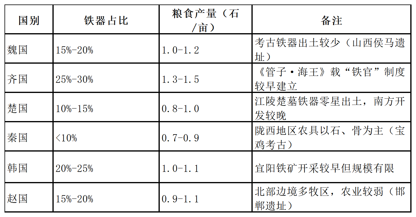 先來看一組數據,看看戰國初期的鐵佔有率(事實大部分國家在戰國結束,這個數據依然好不了哪裏):