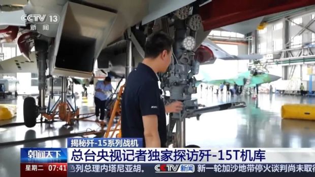 7月8日,央視記者大大方方走進瀋陽飛機工業集團的廠房,説是要“獨家探訪殲-15T戰鬥機的機庫”。可鏡頭掃過的瞬間,所有人都瞪大了眼睛——在兩架被重點介紹的殲-15T旁邊,至少2架淡綠色塗裝的戰機就那麼“不經意”地入了鏡。