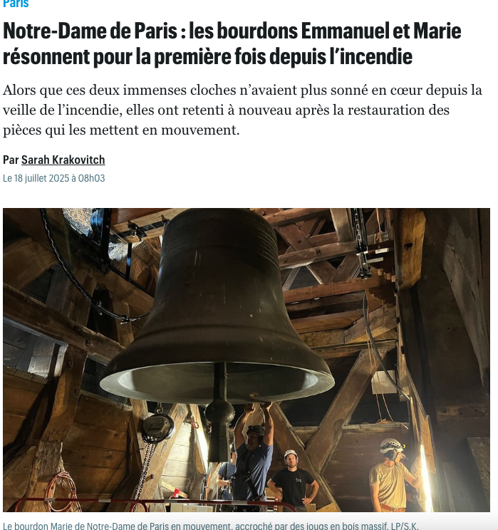 順便説一下,19年巴黎聖母院大火,六年多之後,就是那口舉世聞名的大鐘!卡西莫豆敲的那個,它“重獲新生”了。