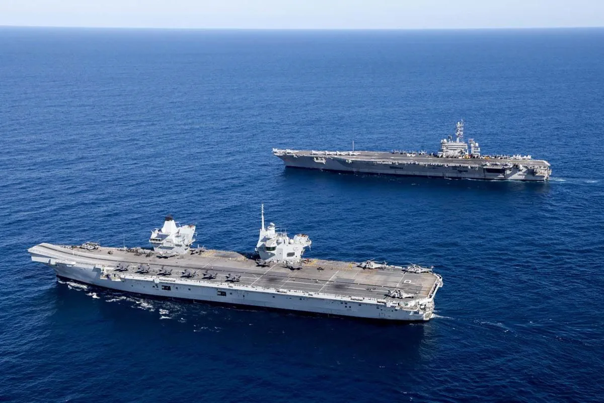 2025年7月18日,英國皇家海軍“威爾士親王”號航母(R09)與美國“喬治·華盛頓”號航母(CVN-73)(英國皇家海軍供圖)
