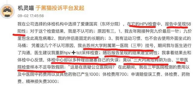 黑貓投訴平台上,不少消費者反映被愛康國賓漏診、誤診,當然,這是很多民營體檢機構被詬病的共性問題。
