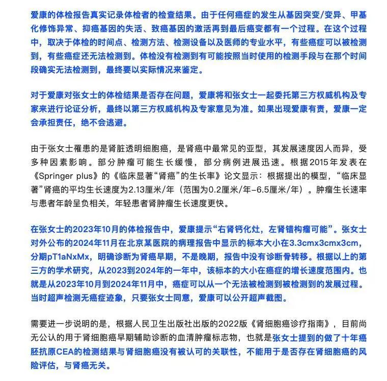 愛康表示可以公開當時的超聲截圖,這無法等同於當時的檢測是合理的。