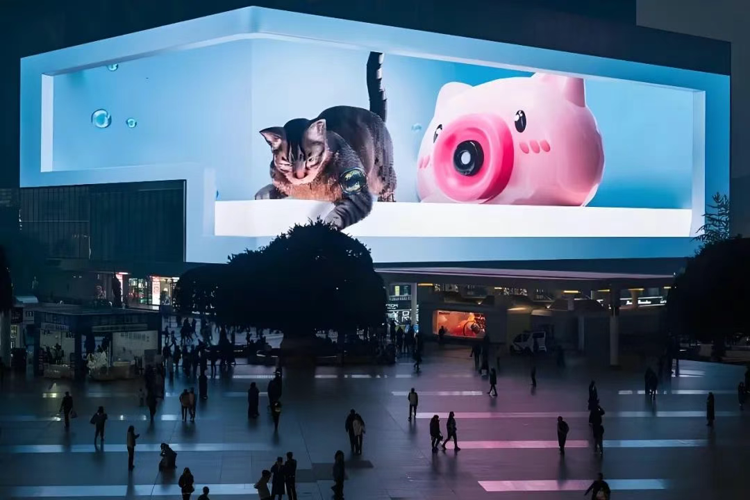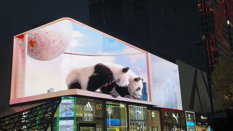 成都的裸眼3D屏爆火後,中國户外大屏直接進入下一個Level。國內很多知名的商業街,出現了吸引眼球的LED大屏,內容不再是單調的廣告,而是會結合節日、城市、熱點事件定製內容。