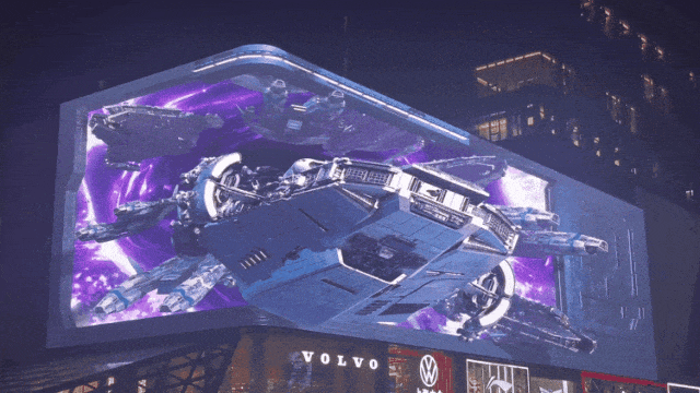 在此之前,裸眼3D也用在户外廣告投放上,但內容多是單調的物體出屏、旋轉,同質化嚴重。