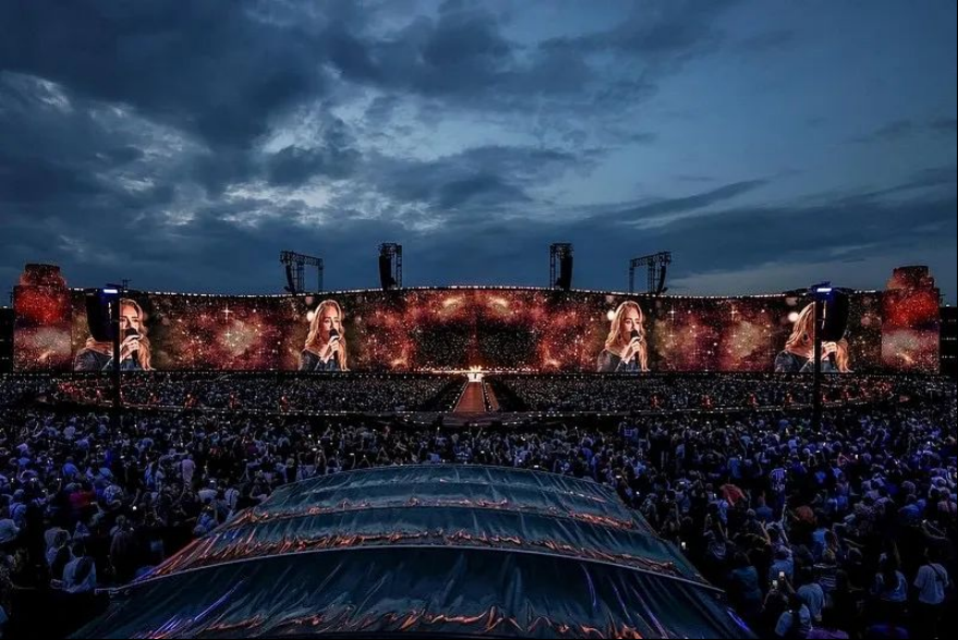 阿黛爾在德國慕尼黑開演唱會用的屏幕,面積達4159.7平方米,刷新了“全球最大户外LED屏幕”的吉尼斯世界紀錄,這塊屏幕用的是中國洲明旗下雷迪奧品牌的LED面板。