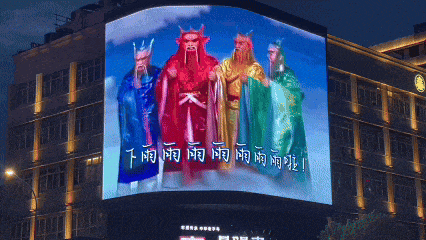 眼看天不下雨,寧波直接請《西遊記》四大龍王在線求雨,在大屏上循環播放"風雨雷電"施法動畫。