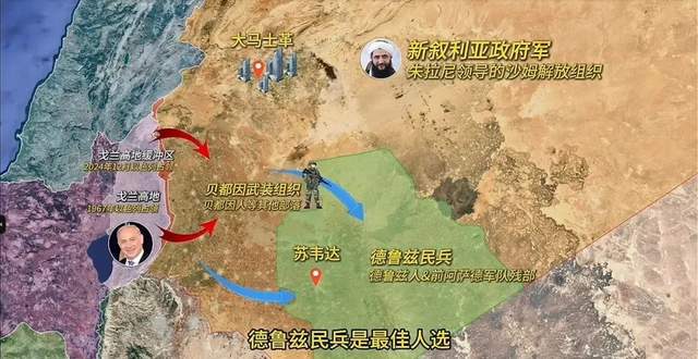 從朱拉尼進入大馬士革,就被以色列空軍轟炸掉全部防空設施和彈藥庫開始,敍利亞其實就已經是以色列的囊中之物,只不過這一次以色列的理由不再遮遮掩掩:全面侵佔戈蘭高地緩衝區,控制敍南部庫奈特拉、德拉和蘇韋達三個省。