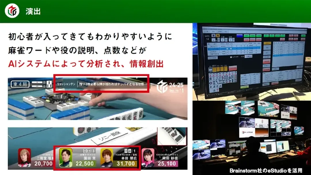 好的聯賽產品,除了競賽設計,用心的包裝也至關重要。早在M聯賽創立前一年,ABEMA就開始設計一個專用的演播室,買入了很多設備,並引入科技手段提高轉播視覺效果,例如利用AR技術旋轉贊助商的標誌,利用字幕和圖形來顯示牌型和點數計算等可能難以理解的信息,幫助更多觀眾熟悉麻將運動。在製作上,ABEMA投資不菲。根據日本媒體報道,在M聯賽創立初期,藤田晉倒貼了幾億日元。