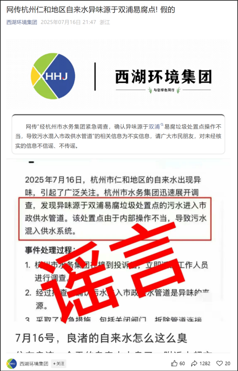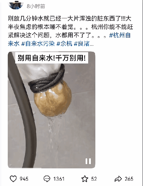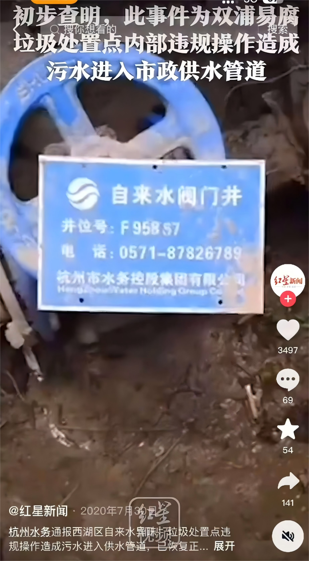 2020年7月26日,杭州雙浦鎮湖埠村的自來水突然出現異味。