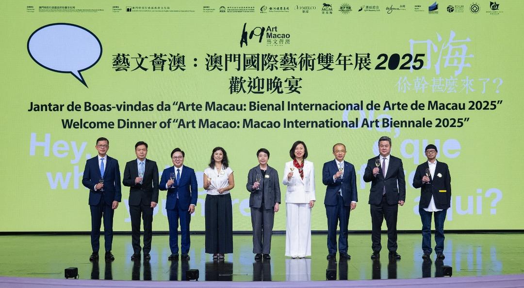 “藝文薈澳:澳門國際藝術雙年展2025”啓動儀式由澳門特別行政區政府文化局局長梁惠敏,外交部駐澳門特別行政區特派員公署新聞和公共外交部主任高原參贊,中央人民政府駐澳門特別行政區聯絡辦公室宣傳文化部副部長白冰,葡萄牙駐澳門總領事館教育及文化副領事聶欣雅(Patrícia Nheu Quaresma),旅遊局代局長程衞東,教育及青年發展局副局長黃嘉祺,新濠博亞娛樂主席兼行政總裁何猷龍,金沙中國有限公司行政副主席王英偉,澳娛綜合度假股份有限公司常務董事何超鳳,永利澳門有限公司總裁、董事會副主席兼執行董事陳志玲,美高梅中國控股有限公司總裁及執行董事馮小峯,銀河娛樂集團企業事務董事林志成,以及“藝文薈澳:澳門國際藝術雙年展2025”總策展人馮博一主持。全場近200名“藝文薈澳2025”的參與藝術家及嘉賓共同為今屆盛事拉開序幕。同日晚上在永利皇宮宴會廳舉行歡迎晚宴,各參與單位一同預祝“藝文薈澳2025”取得圓滿成功。