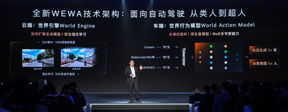 軟件上,改款智界 R7 用上了華為自研的全新智駕模型 WEWA ( 世界引擎與世界行為模型 ),以往難得一見、非常棘手的堵車或者窄路,WEWA 可以靠自主生成無時無刻的訓練。