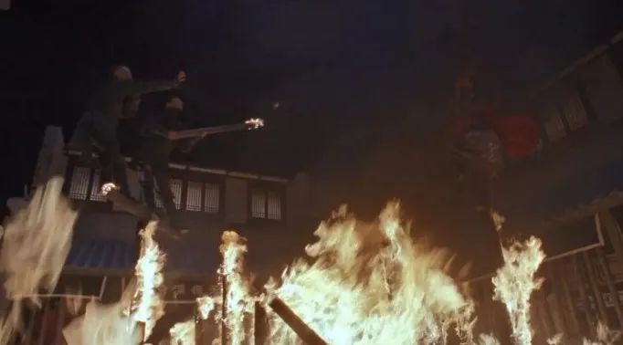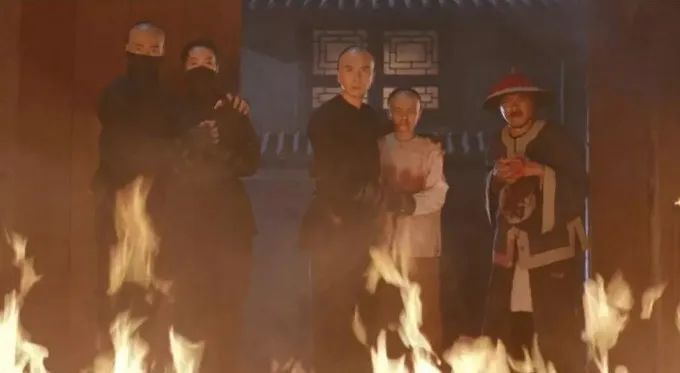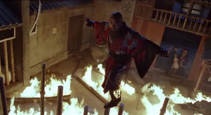 就比如火木樁大戰,少林叛徒衍空和尚被楊黃合擊,三人踩木人樁的打法全程緊張刺激,分分鐘都有墮入火海的危險。甄子丹版的雨傘棍法和佛山無影腳,與李連杰版相比毫不遜色。