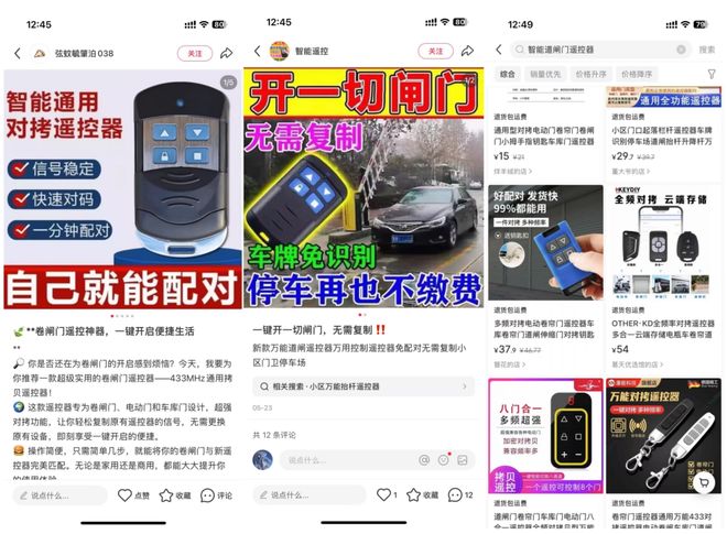 近日,央視新聞曝光“萬能遙控器”智能道閘門遙控器,能夠輕鬆打開小區閘門及學校伸縮門,屬違法產品。《號外工作室》調查發現,小紅書平台不僅有近百篇日記介紹該違法產品,並且仍然有大量商家在小紅書“商品”頁面正常出售。