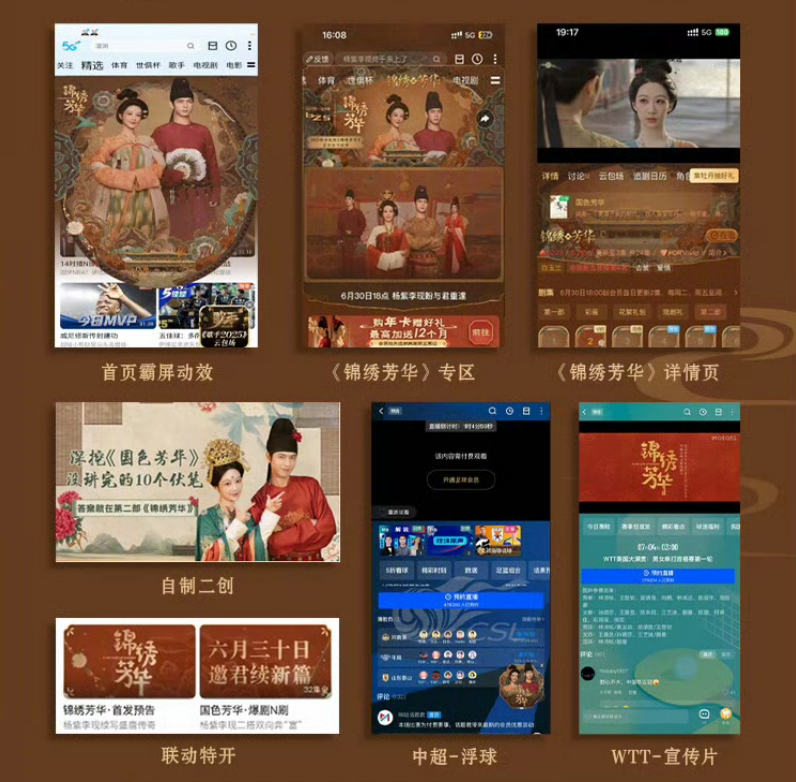 此外,咪咕視頻世俱杯與《錦繡芳華》的聯動還走向了主演李現的家鄉湖北;在WTT、中超等賽事上,咪咕視頻同樣實現對站內深度用户的精準覆蓋。劇播中段,賽事直播中的主持人口播、播放劇集預告片等操作,更是以跨界IP的創意聯動形成了強的記憶點。