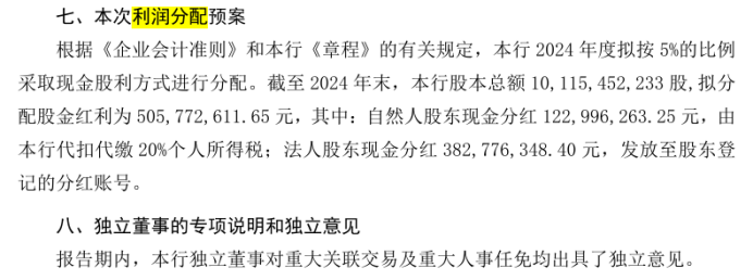 年報數據顯示,2024年江南農商銀行的現金分紅為5.0577億元,佔同期歸母淨利潤38.4億元的13.2%,這一水平對比A股銀行僅好於鄭州銀行。