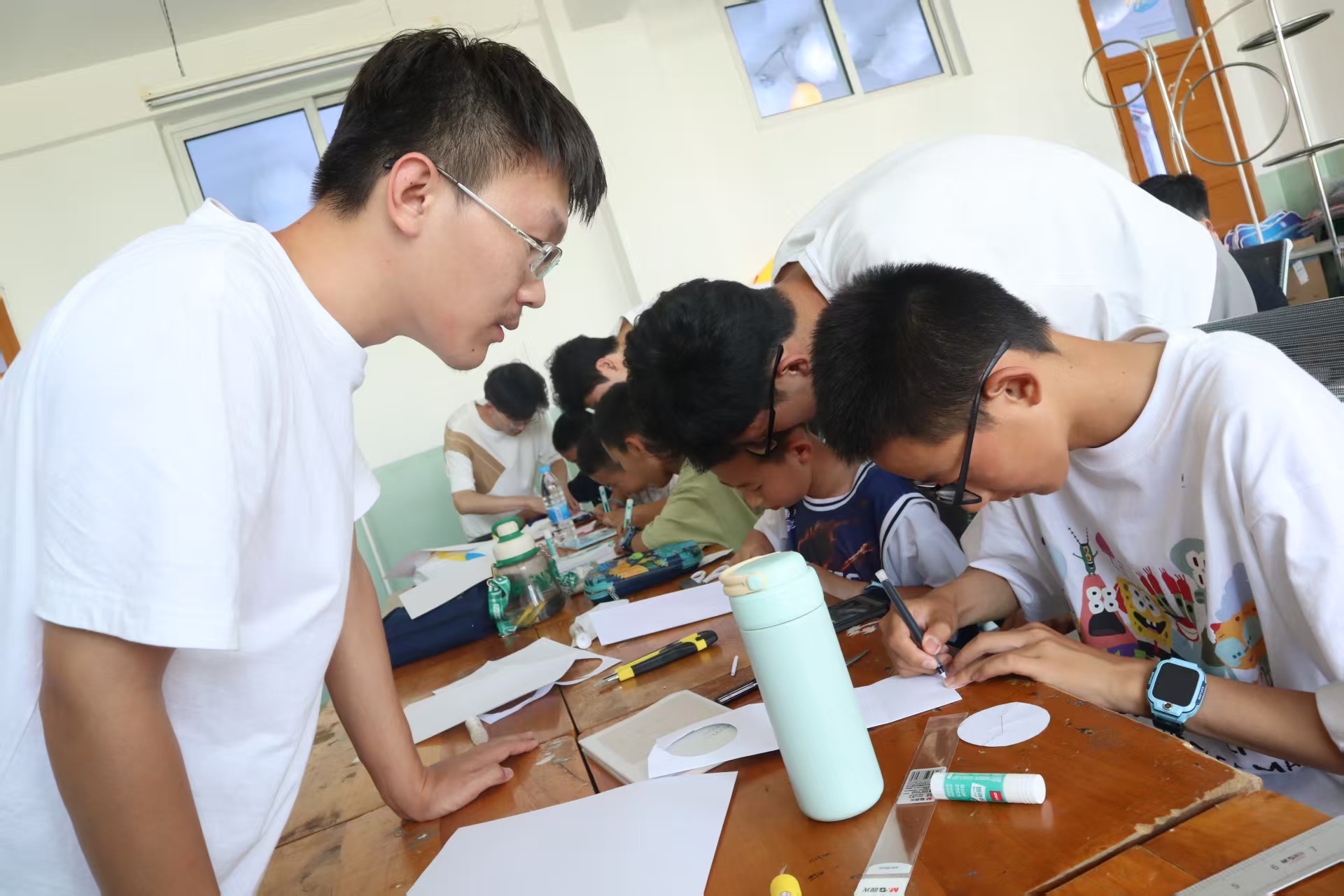 教學中,武澤梁巧妙融入四大發明知識:他拿起宣紙,講造紙術如何讓早期飛行器擺脱笨重材質,變得輕盈可飛;又用簡筆畫演示古代木鳶,説它曾像 “空中偵察兵”一樣幫軍隊探敵情。話鋒一轉,他結合無人機間諜活動案例,告訴孩子們:“航空科技既能造福大家,也關係國家安全。”短短幾句古今對照,讓孩子們既瞭解了知識,又拓寬了視野。