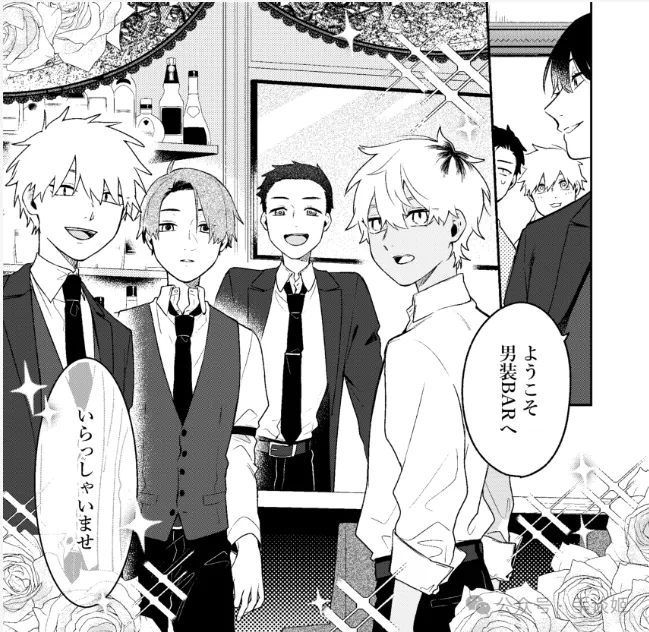 要是覺得這本是BL漫也沒什麼毛病,當然如果細究的話就不能當作BL漫了,畢竟那三個帥哥,是女扮男裝。至於説為什麼女扮男裝,因為三人都在男裝酒吧裏面工作。