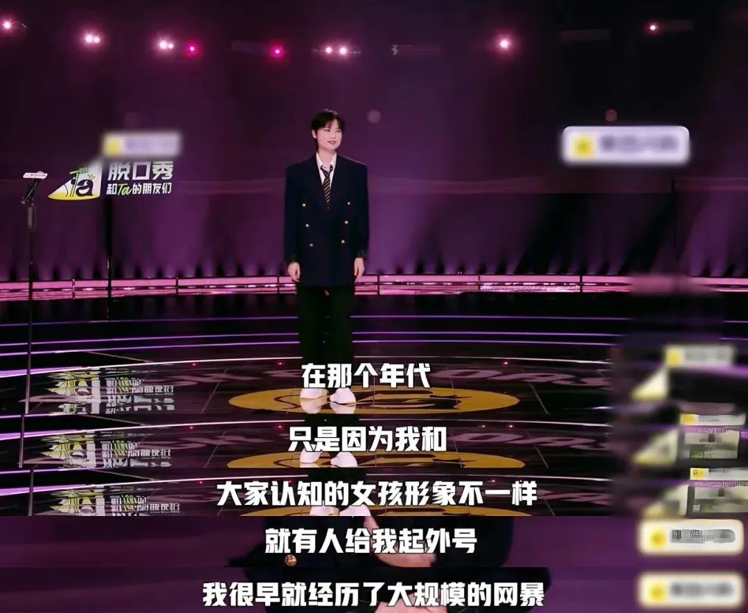 她沒有回應,在熱搜居高不下時,沒有蹭一點熱度,而是用一年時間,為二姐們、為女孩們,打磨製作了一首《冬泳》,然後帶着它登上了脱口秀的舞台。